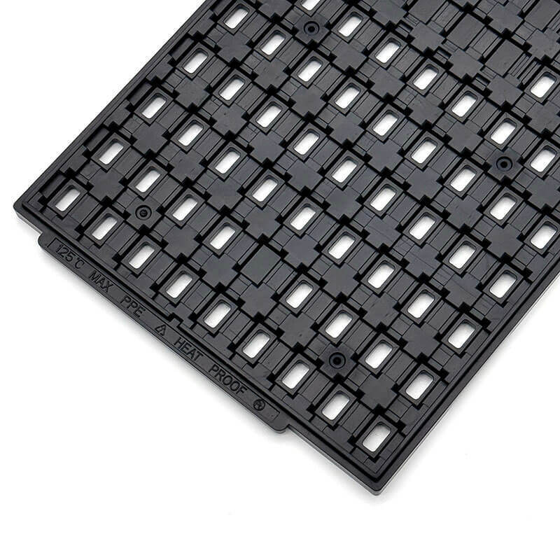 Color and Capacity: While black is standard for ESD conductivity, custom colors can be used for visual process segregation. The internal capacity is optimized through custom design based on the component's geometry and any required special tray features, ensuring universal compatibility with JEDEC feeders.