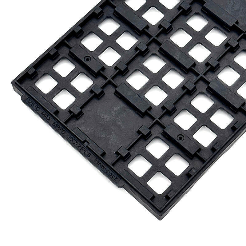 Maximized ESD Safety: Manufactured from Conductive PPE/MPPO polymers, the tray delivers a surface resistivity within the 1.0x10e4-1.0x10e11Ω range, offering rapid static discharge essential for sensitive module electronics.
